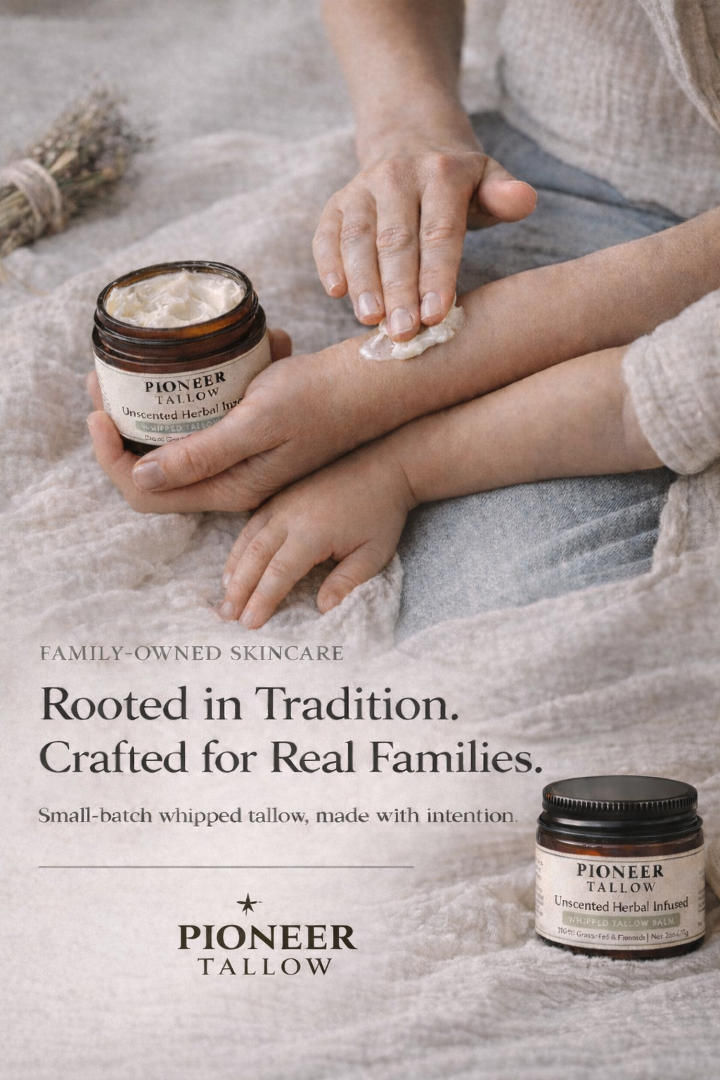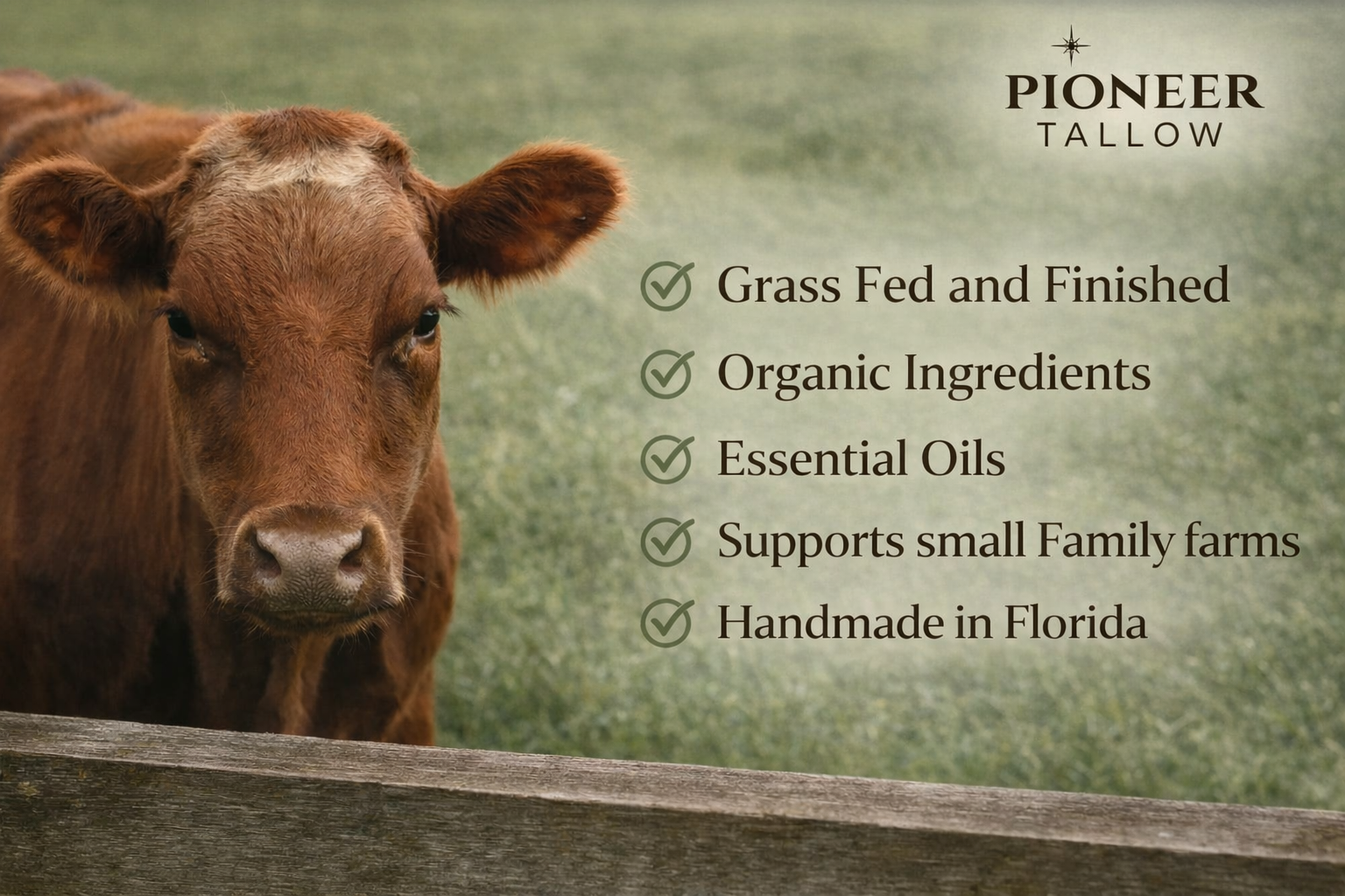 **Ingredients:**Grass-fed beef tallow, jojoba oil (infused with calendula, chamomile & lemon balm), Rare Black Sacra Frankincense